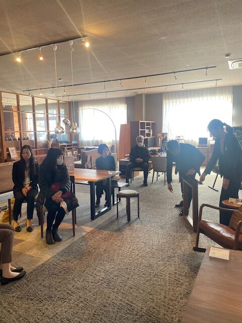 家具に囲まれた心地よい空間の中で、インテリアの仕事や日々の活動について語り合い、和やかな交流の場となりました。